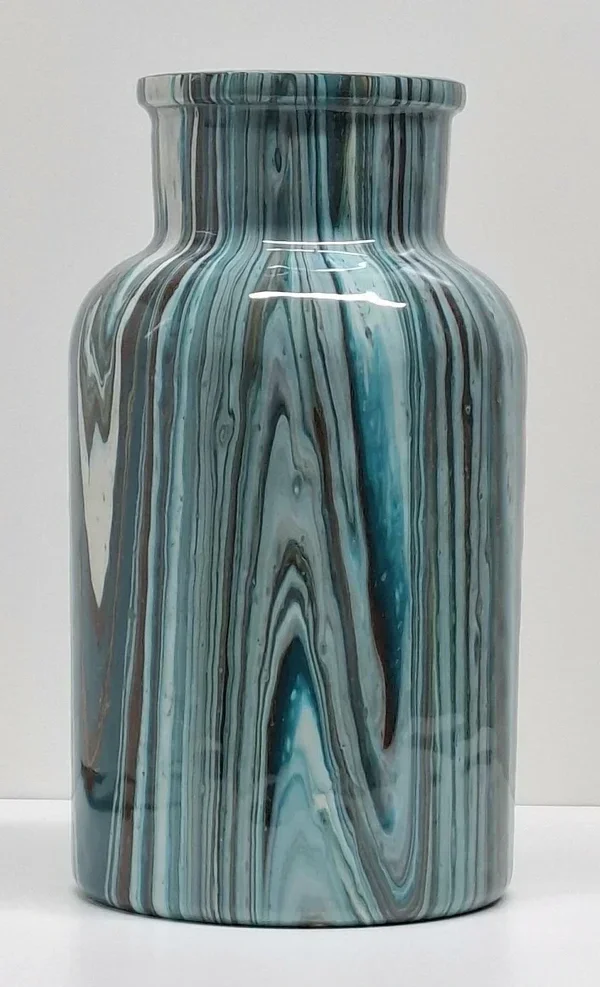 Deze mooie vaas met schitterende kleuren is van dik glas en helemaal uniek. Hij is met de hand gegoten met hoogwaardig acrylverf en daarna een laag epoxy erover voor een prachtige uitstraling.