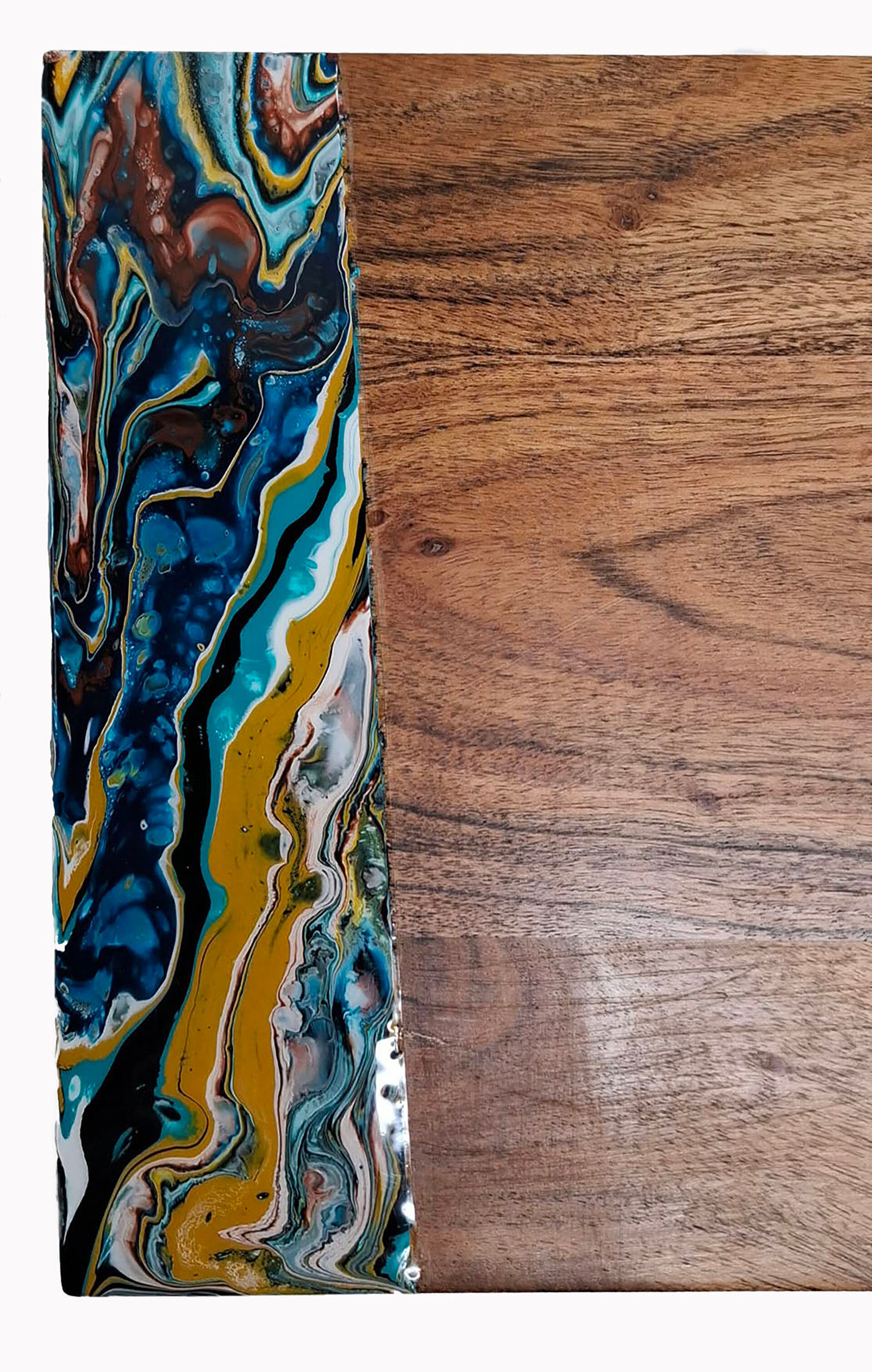Deze super leuke borrel/serveerplank is perfect voor het presenteren van al je hapjes. Maar natuurlijk ook leuk als decoratie in je huis. De borrelplank is uniek en zelf met de hand gegoten. Daarna is er een voedsel veilige epoxylaag over het beschilderde gedeelte aangebracht voor een prachtige uitstraling! Een echte eyecatcher voor op tafel.